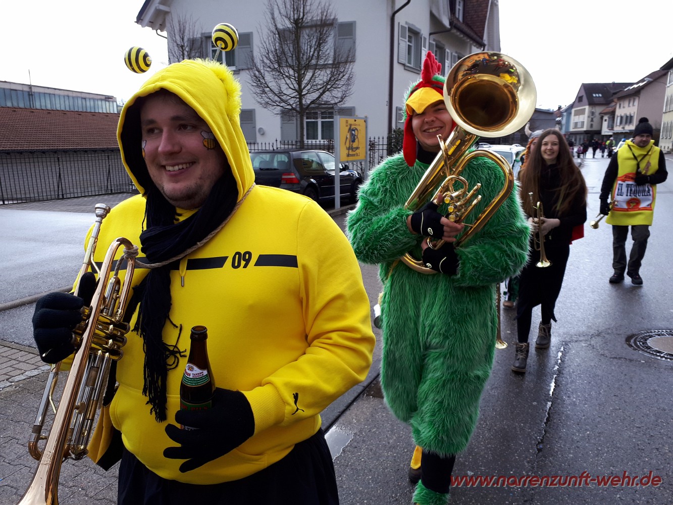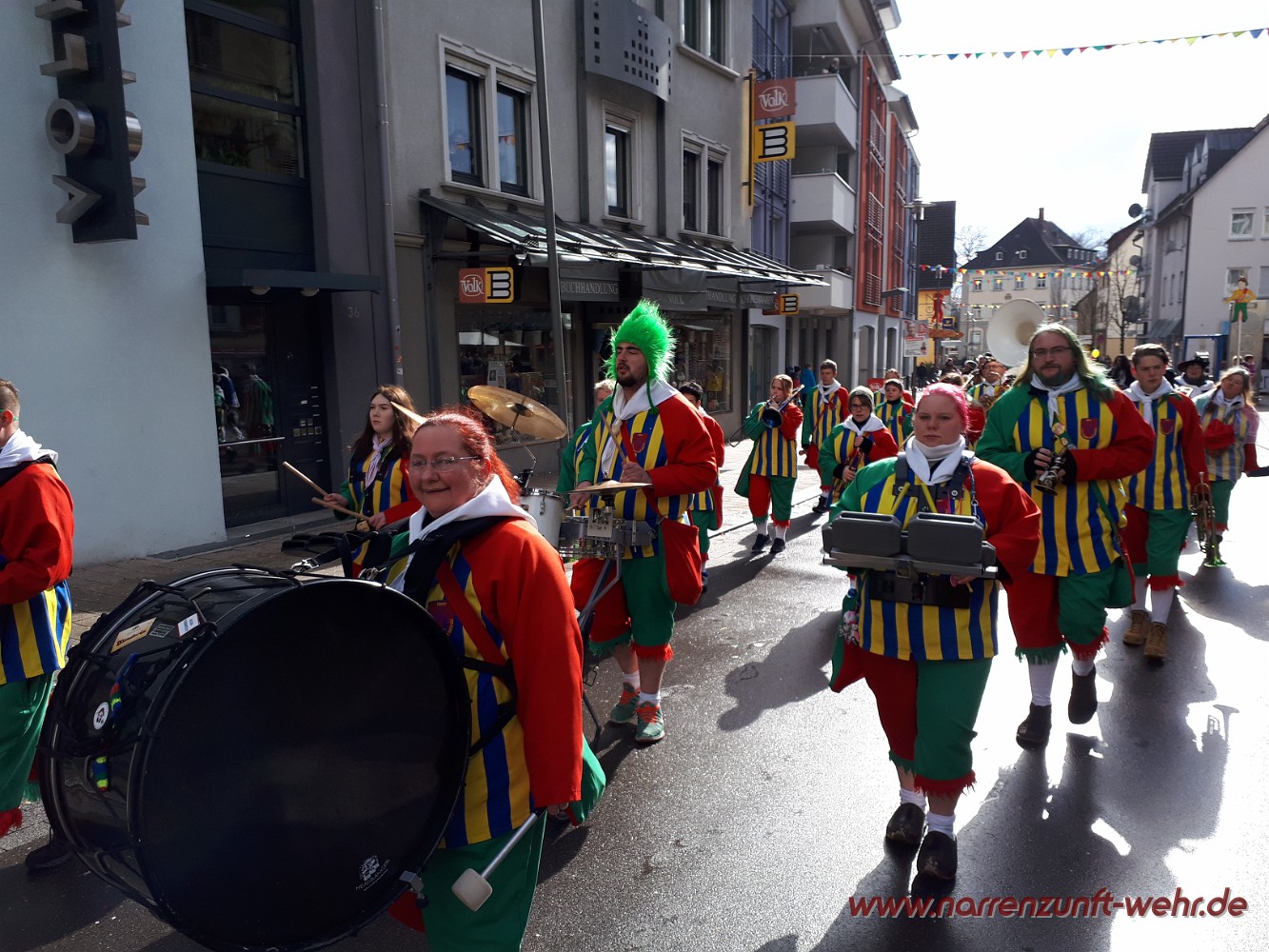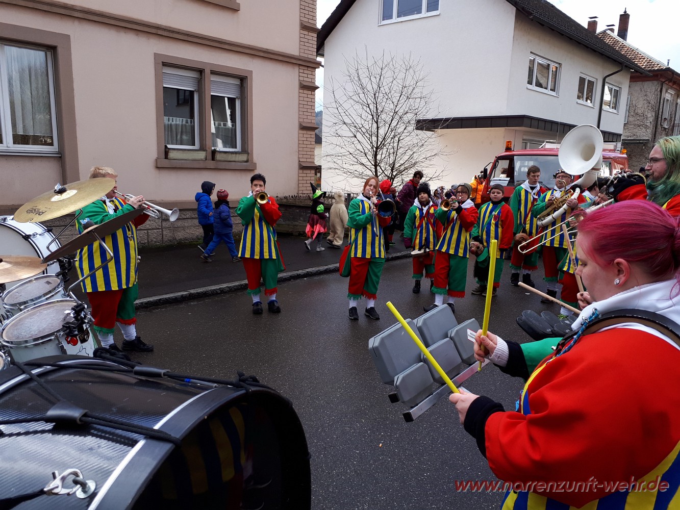 Der Kinderumzug startete kurz nach 12.11 Uhr von der Georg-Kerner-Straße. Begleitet wurde der Umzug von den Lus-Chaibe und den Storchestäghüüler. Unser Weg führte uns durchs Tal, wo wir an der Sparkasse Hochrhein empfangen wurden und die Kinder etwas Süßes zum naschen bekamen. Danach ging es bis zum Radsport Büche / Schmidt's Markt wo die Kinder von der Servicegemeinschaft Wehr nochmals mit einer Süßigkeit bedacht wurden. Wer Lust hatte, durfte sich in den Fasnachtsmändig-Umzug einreihen und mit bis zum Narrenmarkt laufen.